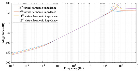 where is the center frequency of the extracted harmonic components, k is the gain of center frequency, Q is the quality factor. The transfer function of the virtual harmonic impedance is , which can characterize the relationship between and . By combing (9) and (28), the transfer function of this loop can be obtained: