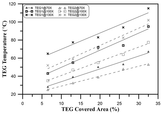 TEGs’ temperature increased as a function of increasing the covered area of their surfaces.