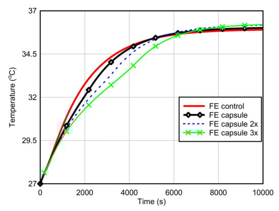 FE-predicted temperature time histories for panel using different forms of macro capsules.