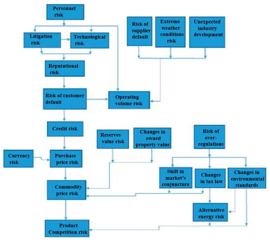 As can be seen from the table and figure above, the majority of researched risks affecting natural gas trading companies are interrelated and can cause a chain reaction of the risks. This makes the evaluation of risks rather complicated and raises additional challenges in selecting research methods [75]. Nevertheless, it is necessary to choose the methods that would also allow assessing the hierarchical dependency of the risks that affect natural gas trading companies. The solution for this challenge is presented in the methodological section of this research paper.