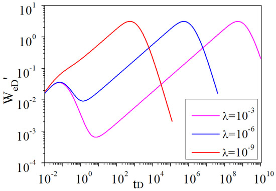 - The smaller the interporosity flow coefficient is, the more obvious the double steps in the dimensionless water influx curve and the more apparent the “V-shape” in the derivative curve are.