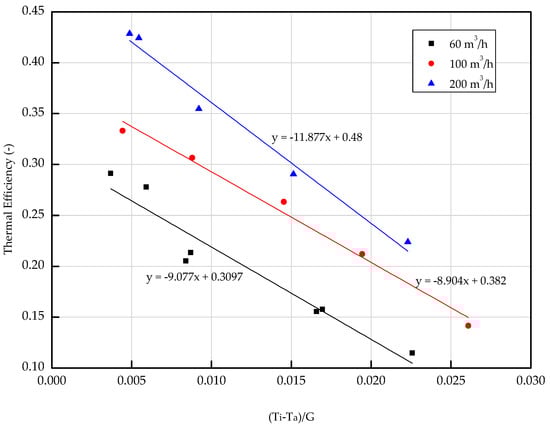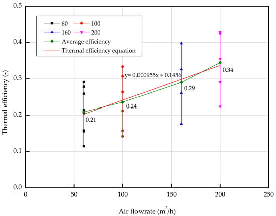 Thermal efficiency for different air flow rates.