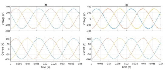 Waveforms at the grid interface (a) without and (b) with the MIMO injection signal added to converter G4 output current references.