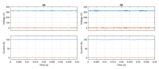 Figure 11 shows the measured voltage and currents at the grid interface with and without the injection from converter G4. The injection was set to 2 A, which is equal to 2 percent of the total grid current of 100 A, which was found to provide sufficient compromise between noise rejection and measurement time.