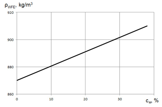 In some research [11], operation of low-speed diesel engines using WFEs with a water content from 6% to 25% are described. It has been established that specific effective fuel consumption, decreases by 3–10%, but other tests showed that it increased. The efficiency of medium-speed diesel engines has been improved by 2–5% when using WFE with a water content of 10% to 39% [12]. For high-speed diesel engines, improving efficiency is not always possible and this depends on the mixing method. In diesel engines with a vortex chamber, it is the possible to increase the efficiency by 10–13%, but an undivided combustion chamber can provide only 5–10%. For diesel engines with a pre-chamber, the use of WFE to increase efficiency is impractical.