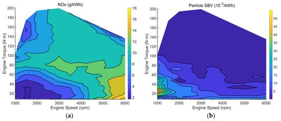 is, the more attention will be paid to the optimization of emission indicators. As a consequence, the operation range of engine is supposed to be obliged to “comparatively low emissions area” (i.e., the darker areas in