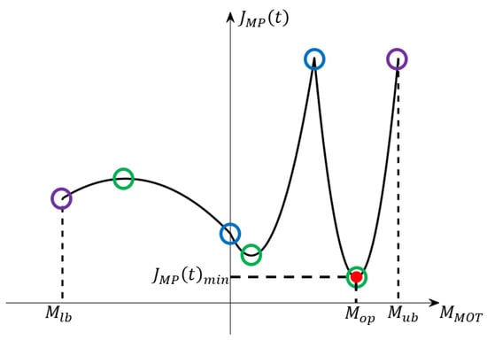 Table 3, the cycle time of WLTP is 1800 s. It should be noted that the time step in the MATLAB/SIMULINK model is set as 1 s, which indicates that all operation condition points of the complete WLTP cycle amount to 1800. Red cross dots in
