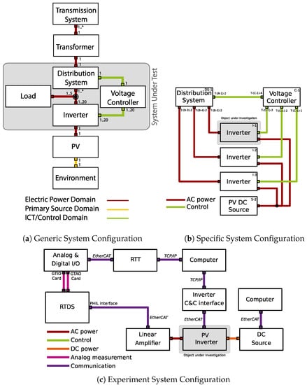 Appropriate tests for multi-domain systems are harder to plan than tests within established disciplinary boundaries. Consider that solutions in the field of Smart Energy Systems, as for example a Distributed Energy Resource Management (DERM) application [,], tend to encompass multiple disciplines (ICT, automation, physical infrastructure) and affect several physical domains (electricity, heating, energy storage, etc.), with causal interactions and feedback loops spanning across disciplines and domains. Experiments for the characterisation of relevant aspects and validation of each DERM system function will have to consider functional and structural qualities of each discipline, as well as their interactions.