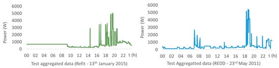 Aggregated load diagram for testing using Refit (left) and REDD (right) datasets.