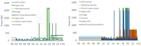 Figure 5 shows the aggregated data to be tested on the disaggregation and flexibility models. The days are a part of the datasets under study, so that the results could be known and a test could be applied. In practice, this data would be a forecast of the load consumption for a given house, which is typically done across the electricity sector based on weather conditions, constraints, and foreseen interventions, and past data (weekdays, weekends, and also accounting for seasonal changes).