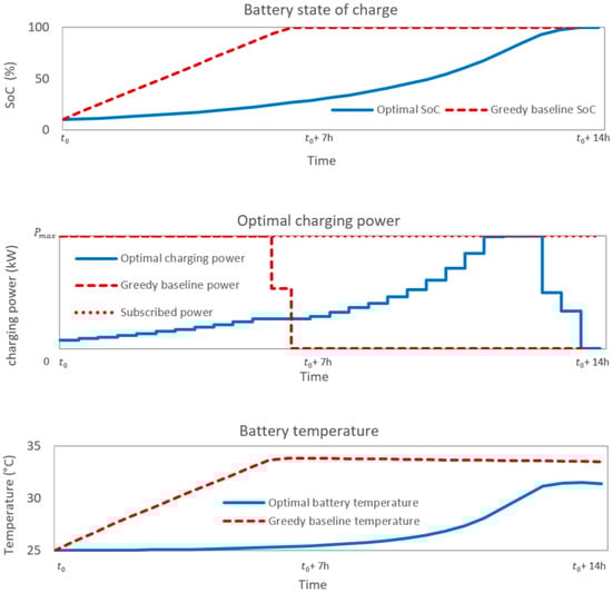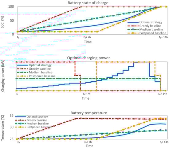 Other charging strategies have been compared in the literature [,]. In this work, we compared our strategy’s results to the three typical strategies mentioned before, as they are easy to implement.
