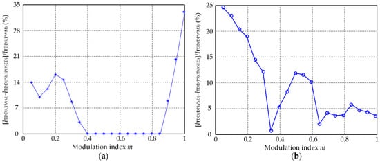 As shown in Figure 11a, for the modulation index m < 0.38 and m ≥ 0.8, ITDD of the proposed strategy is lower than that of CPWM and DPWM3. For the modulation index 0.38 ≤ m < 0.8, output waveform quality of the proposed strategy and CPWM are the same, which is still better than that of DPWM3. The same conclusion can be obtained from Figure 11b. The percentage improvement of proposed strategy versus CPWM and DPWM3 is shown in Figure 12.