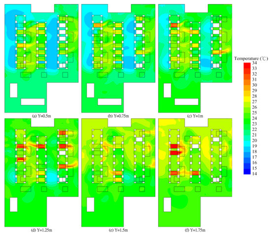 To enhance the understanding of bypass and recirculation airflow of the data center, the temperature trajectory is presented through the CFD simulation. As shown in