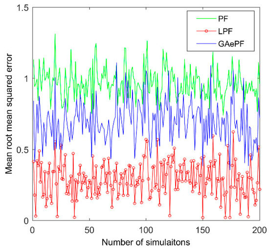 18. Gordon, N.; Salmond, D.; Smith, A. Novel approach to nonlinear/non-Gaussian Bayesian state estimation. IEEE Proc. F 1993, 140, 107–113. [Google Scholar] [CrossRef]