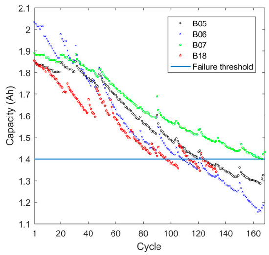 36. Saha, B.; Goebel, K. Battery Data Set. NASA Ames Prognostics Data Repository, NASA Ames Research Centre, Moffett Field, CA, USA. 2007. Available online: https://ti.arc.nasa.gov/tech/dash/groups/pcoe/prognostic-data-repository/ (accessed on 1 March 2019).