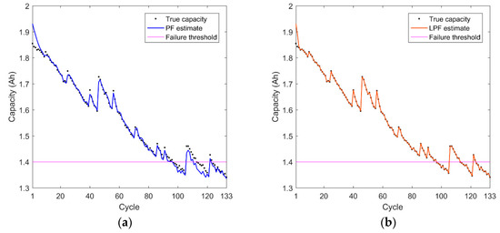 22. Miao, Q.; Xie, L.; Cui, H.; Liang, W.; Pecht, M. Remaining useful life prediction of lithium-ion battery with unscented particle filter technique. Microelectron. Reliab. 2012, 53, 805–810. [Google Scholar] [CrossRef]