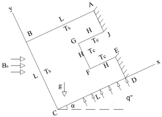 - Kasaeipoor, A.; Ghasemi, B.; Aminossadati, S.M. Convection of Cu-water nanofluid in a vented T-shaped cavity in the presence of magnetic field. Int. J. Therm. Sci. 2015, 94, 50–60. [Google Scholar] [CrossRef]