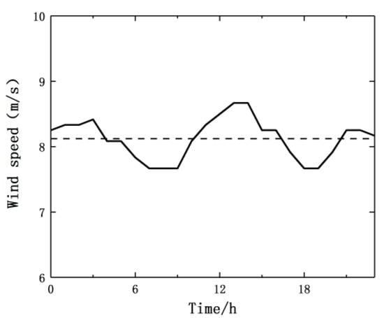 In this paper, wind power output is mainly calculated by the mechanism modeling method according to the typical annual wind speed of the planned place []. Considering the influence of wind speed fluctuation on the output power, the relationship between them can be deduced as follows: