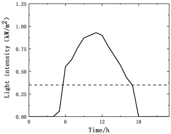 Similarly, according to the typical annual solar intensity, the PV output can be approximately considered as proportional to the solar intensity and PV module area. The relationship can be expressed as Equation (9):