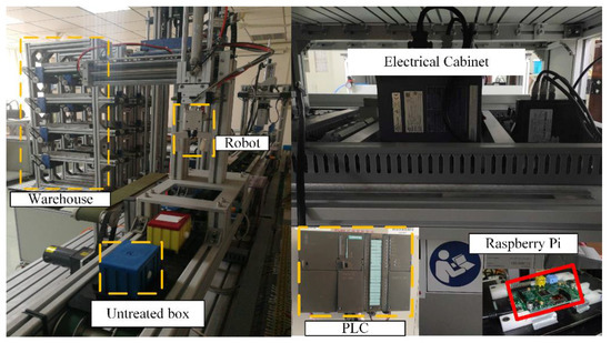In this section, a distributed manufacturing environment [24] is built using a Hadoop-based framework. The Hadoop Distributed File System (HDFS) is set to implement the real-time acquisition and analysis of the local data, which is composed of machine log data and status data. The data integration is loaded on a Raspberry Pi 3b+ with a Linux system. On the Raspberry Pi, an OPC UA server plays a role as monitor agent to transmit unintegrated information and pre-process the raw data from PLC (Siemens S7-300) of the experimental platform. A semantic model based on OPC-XML-DA (data access)standard is built to realize the data fusion of heterogeneous devices. Meanwhile, to achieve efficient information interaction, the function of MAS is implemented through Raspberry Pi.