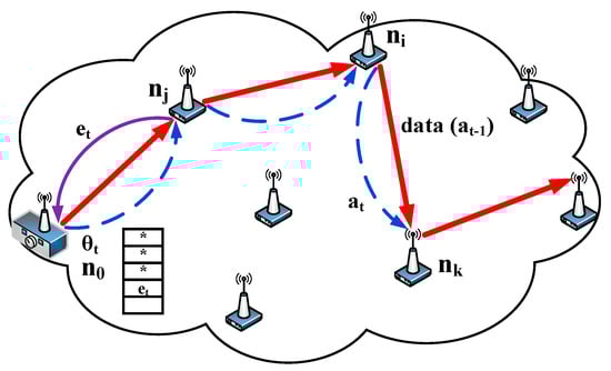 - Pourpeighambar, B.; Dehghan, M.; Sabaei, M. Non-cooperative reinforcement learning based routing in cognitive radio networks. Comput. Commun. 2017, 106, 11–23. [Google Scholar] [CrossRef]