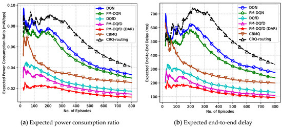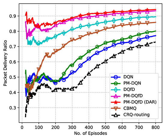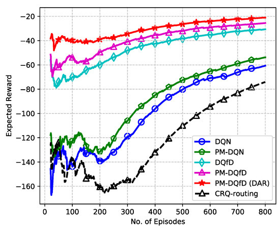 - To save the system memory and further improve the performance, PM-DQfD is proposed. This makes it possible to periodically erase the inessential self-generated data and outdated expert demonstrations to release replay memory. In addition, it reduces data redundancy and optimizes memory structure, which produces better performance. Simulation results show that the proposed method decreases routing delay and enhances energy efficiency, as well as network stability.