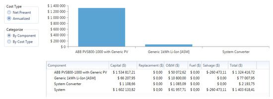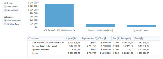 4.1. Photovoltaic (PV)–Battery Plant Off-Grid Cost Analysis