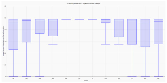 Figure 45, Figure 46, Figure 47 and Figure 48 These figures indicate more charge and discharge power of PPS throughout the year. It can be seen that during the month of May, June and July the rainfall in the country is less and it is thus difficult to depend on PPS up until August when it starts raining again. Even though pumped storage relies on stored water, this water is subject to evaporation and can be lost in other forms.