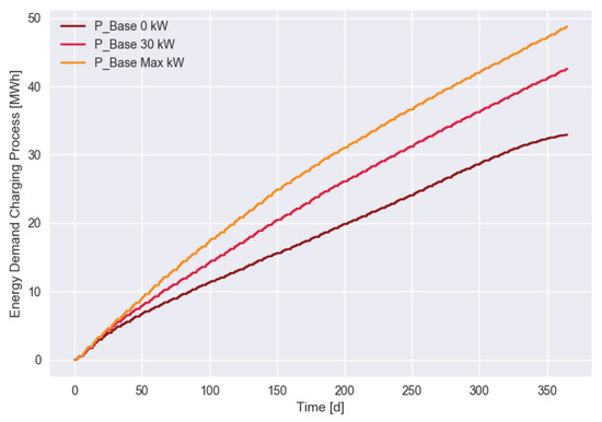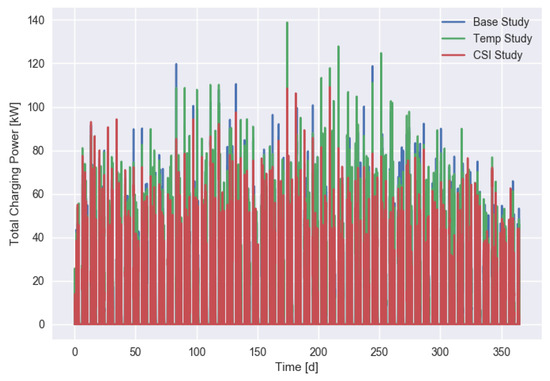 The daily charging power for the three different scenarios is shown in Figure 6.