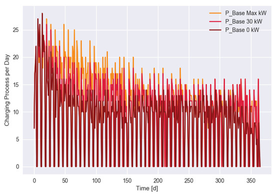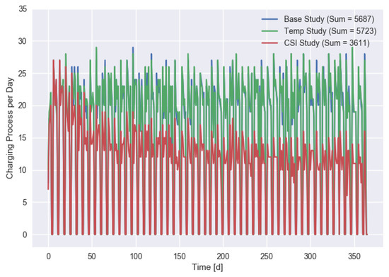 Number of daily charging processes for different scenarios.