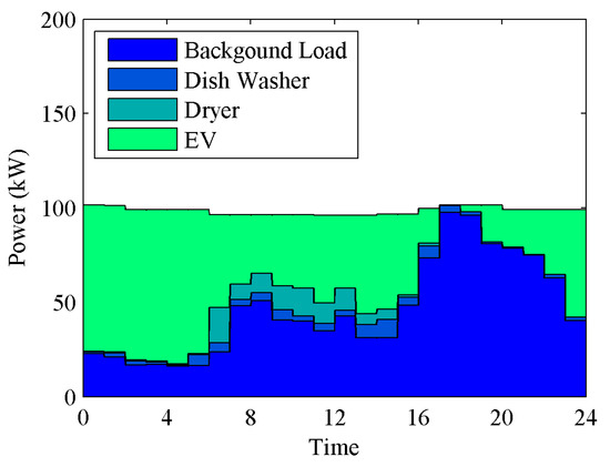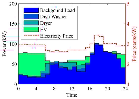 Various deterministic and stochastic optimization models can be seen in the literature. A mixed-integer linear programming (MILP) model was developed to study V2G technology and energy storage systems (ESS) responding to the combination of a RTP with a peak power limiting-based strategy, and a 65% reduction in the cost of electrical energy was reported [23]. A bi-level optimization model was developed in a MAS framework in response to dynamic prices to flatten the load profile [24]. A DLC strategy was evaluated in [25]. An incentive-based strategy was investigated to find the trade-off between rewards and comfort levels [26]. A decentralized DR framework was proposed for DR programs considering generation cost, the consumers’ discomfort cost, and transmission constraints [27]. A transactive DR model was proposed with high EV penetration levels [28].