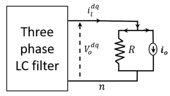 The resistive part of the three-phase load is assumed to be dominant, and is considered to be a disturbance signal. The current source can be considered as a disturbance source for the filter, and the disturbance part of the load current is , as shown in Figure 2 [7]. With this disturbance term, Equation (8) can be rewritten as follows: