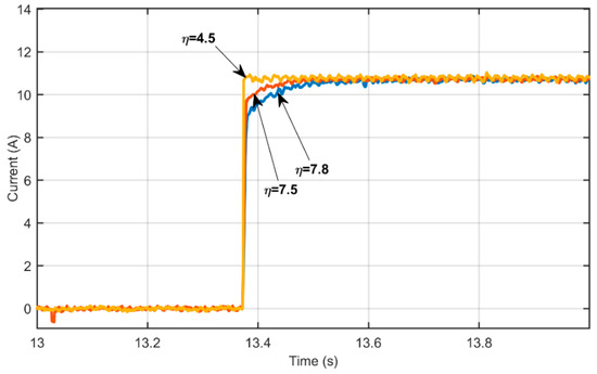 Transient response of MPC-DOB and RC-DOB under the nonlinear load with different filter parameters ().
