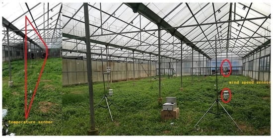 Greenhouse production plays an important role in the development of modern agriculture, especially in densely-populated areas with tight land, such as eastern China. The environmental conditions in greenhouses are essential for crop growth, pest/disease prevention, energy saving, etc. For most active or passive greenhouses, appropriate environmental parameters for crop growth are assessed based on the analysis of environmental factors as lumped parameters []. Meanwhile, for large/medium-sized greenhouses, the environmental parameters at the crop growing area are not equal to the values at the sensors’ location. For more accuracy, parameters such as temperature, ventilation rate and concentration, should be considered based on a precise micro-climate model considering the spatial distribution inference.