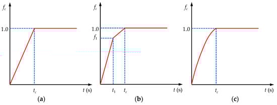 Compared with the OLCS and the OLCLCS, determining a reasonable desired rise curve of the rotating speed is a key issue for the CLCS. As depicted in Figure 4, three kinds of desired rotating speed rise curves are commonly used, and these are the linear opening scheme, the two-phase opening scheme and the exponential opening scheme.