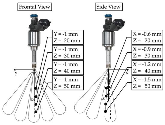 Phase Doppler Anemometry (PDA) measurement points for the Spray G injector.
