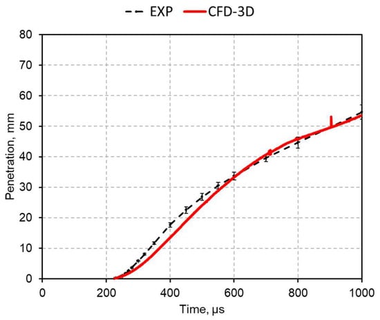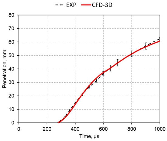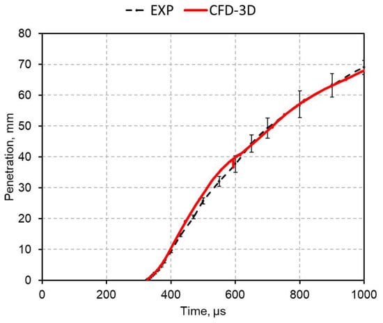 That said, numerical penetrations closely reproduce experimental outcomes for all of the investigated conditions.