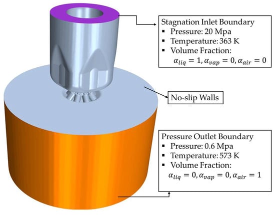 - Zhao, H.; Quan, S.; Dai, M.; Pomraning, E.; Senecal, P.K.; Xue, Q.; Battistoni, M.; Som, S. Validation of a Three-Dimensional Internal Nozzle Flow Model Including Automatic Mesh Generation and Cavitation Effects; ASME: New York, NY, USA, 2014; Volume 136. [Google Scholar] [CrossRef]