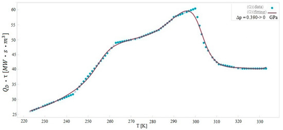 Following the methodology introduced in Section 2.2 about Q modeling, we built the mathematical expressions of Q terms for acetoxy silicone rubber. As an example, we report in Figure 4 the fitting of the Q term for the ASR representative of the adiabatic decompression process from 0.390 GPa to 0 GPa.