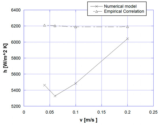 Comparison between the convective heat transfer coefficients carried out from the numerical model and the ones evaluated through empirical correlations.
