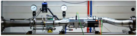 The prototype of the axial inline propeller turbine with 85 mm of diameter was redesigned and tested in the lab facility of HES-SO Valais (Figure 1). To guarantee a consistent distribution of the upstream flow velocity and consequently reducing the frictions losses, the turbine was located upstream from the curve. Four pressure transducers with accuracies between 0.05%, and 0.5% were installed 1 upstream of the curve, two upstream and downstream of the runner and the last one at downstream the curve. The flow was measured using an electromagnetic flowmeter with 0.5% of accuracy. A permanent magnet generator of 1.23 kW was used with a peak speed of 4880 rpm [18]. The torque was evaluated with a sensor operating between −4 to 4 Nm with accuracy precision of 1%. Before these experiments, all instrumentation was calibrated.
