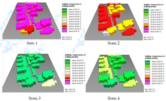 The indoor energy reduction by scenario s of the whole block was calculated by the following equation [].