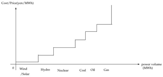 In a power market, “merit order effect” is used as a term to describe the mechanism by which the market price is determined. The electric power supply is determined based on the “merit order”; among these, the sources with the cheapest marginal costs (mostly renewable energy sources such as wind power, solar energy, hydroelectric power, and nuclear power) will be sold more quickly. Renewable energy sources such as photovoltaic solar power, wind power, and hydroelectric power are located at the left end in the merit order curve because they have little marginal costs. Based on this, nuclear power, coal, oil, and natural gas follow in order (see