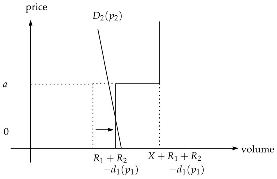 We formulated the following equations as an original model. Suppliers can produce electricity at , and they can trade them at . The trading good for is not electricity; rather, it is the right to sell electricity at . Therefore, at date 1, the suppliers who expect higher prices at date 2 have an incentive to buy them, and those who expect lower prices at date 2 have an incentive to sell them.