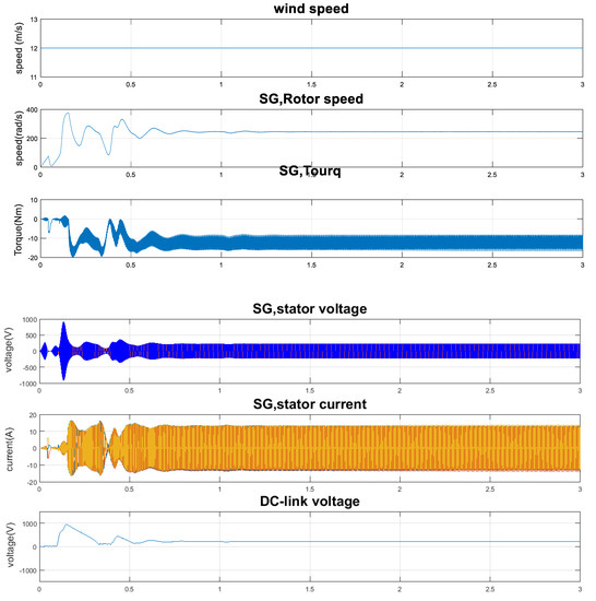 Generally, the wind turbine drives the PMSG, which feeds a separate load. Its terminal voltage depends predominantly on the rotor speed and load current.