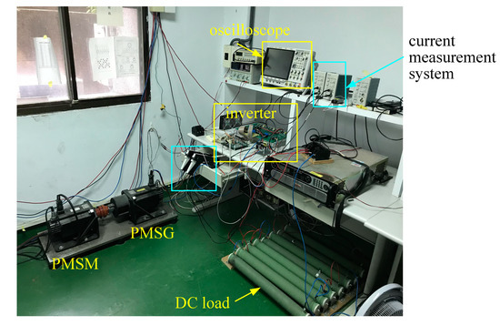 The parameters of the PMSG are listed in Table 2. Table 3 shows the specifications of the PMSG drive. Figure 3 demonstrates the experimental equipment of the PMSG system based on the IT2 T-S fuzzy systems. The adopted PMSG is the model YBL17B-200L manufactured by YELI electric & machinery Co., LTD, Taiwan. The oscilloscope is KEYSIGHT DSO-X 3014T (Keysight Technologies, Santa Rosa, CA, USA). The current measurement system includes current probe Tektronix TCP303 and amplifier Tektronix TCPA300. Constant and variable current commend experimental results are given as follows.