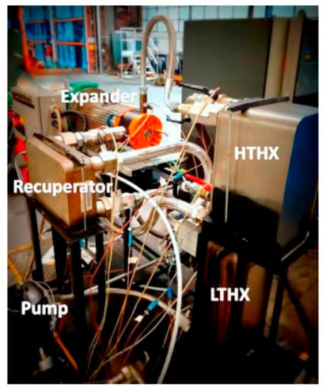 A general view of the ORC test stand implemented at Politecnico di Milano []. Reproduced with permission from Stefano Murgia and Gianluca Valenti, Energy Procedia; published by Elsevier, 2017.