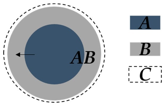 The Ginstling-Brounshtein model (D4) is a three-dimensional diffusion model based on a different mathematical representation of the product layer thickness [45]. The reaction model consists of a sphere of component A with a homogeneous matrix of component B and the formation of a number of intermediate phases in a concentric layer [65]. Diffusion-based reaction models are depicted in Figure 8.