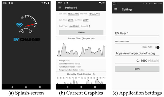 Apart from the EV charging process, which can be considered the crux of the system, the mobile app also implements several features that, although not as relevant, are required to achieve a production-grade design stage. Figure 7 and Figure 8 shows screenshots for some of the implemented features: