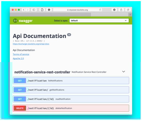 The platform services, built using the Spring Framework and SpringBoot, are exposed as a set of Representational State Transfer (REST) endpoints, self-documented through the use of the Swagger Framework, as presented in Figure 11. This approach exposes an API (Application Programming Interface) that can be easily used by third-party applications, using standard interoperability tools, allowing the development of custom-made integrations (for instance, to integrate the platform with a condominium management system). The platform data is stored in a local MariaDB database server. Aiming to guarantee the security of the communications between the management console, the mobile app and the central unit use a standard HTTPS protocol that has been archived by the installation, and configuration of HTTPS certificates (freely provided by Let’s Encrypt), deployed in an NGINX (Engine X) web server, which acts as a proxy between the “external world” and the services layer.